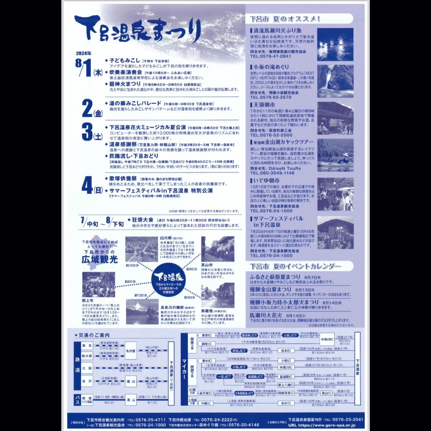 8月3日(土曜日)・・・下呂温泉花火ミュージカル夏公演、温泉感謝祭、下呂おどり・民踊ながし